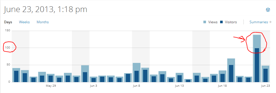 Prior to yesterday my single best day was 81 views with the exception of my Freshly Pressed article about the St. Louis Cardinals and how being a fan was an important part of my life. Freshly Pressed means WordPress puts the blog on their front page for a couple of days. I had 440 views on the day I was Freshly Pressed.