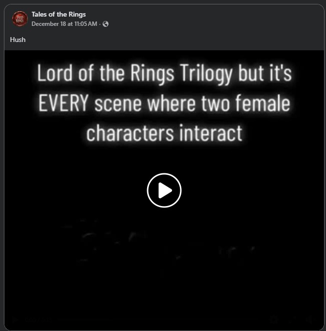 A friend of mine recently posted a meme about how few times women interact in Lord of the Rings movies.